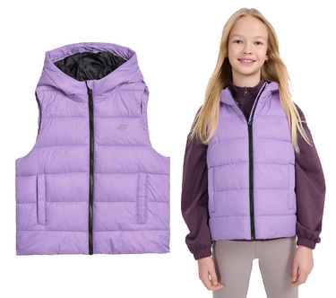 Kamizelka dziewczęca 4F F080 bezrękawnik z kapturem